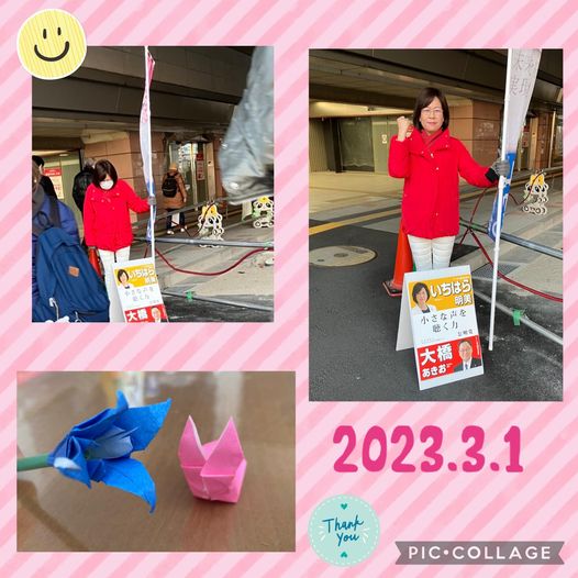 暖かい朝を迎えました。今朝は、#枚方市駅北口 前にて元気いっぱいご挨拶を。昨日、小学生の子どもさんから、第2弾‼︎で小さな折り紙で折った激励の #うさぎ さんと、#お花 を頂きました✨いつもありがとうございます‼︎今日もこれから地域訪問、昼からは団会議が続きます。頑張ってまいります‼️