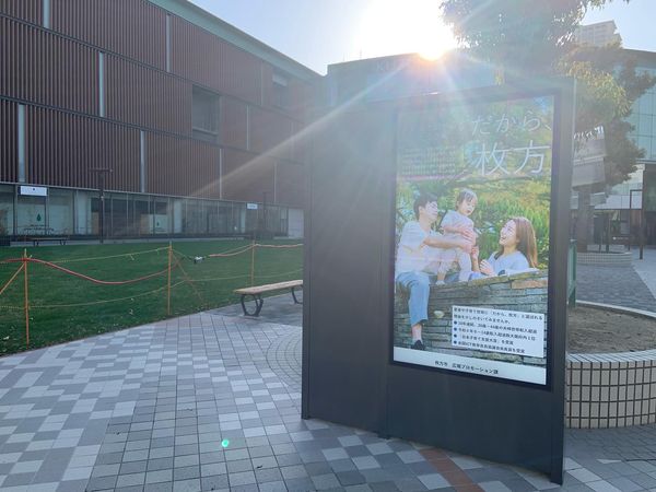 4月1日、新年度のスタートは樟葉駅前挨拶から☀️樟葉駅前広場の改良工事もかなり進んでいます。芝生広場、デジタルサイネージ、日除け、ベンチなどなど、議会での要望どおりに設置されています。