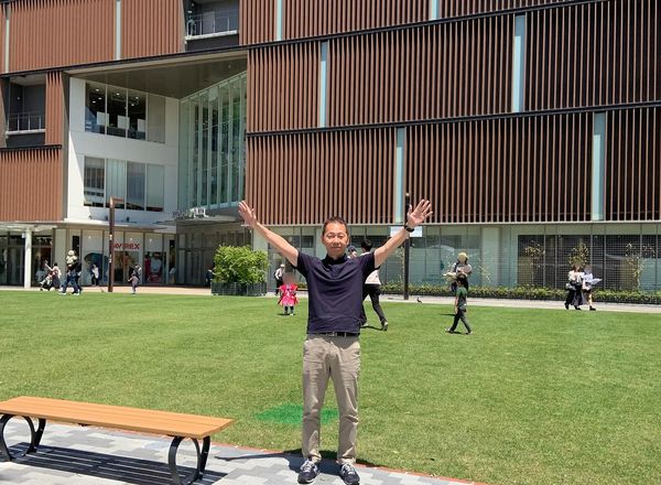 駅前に広がる快適な芝生広場、天気も良くサイコーでした!