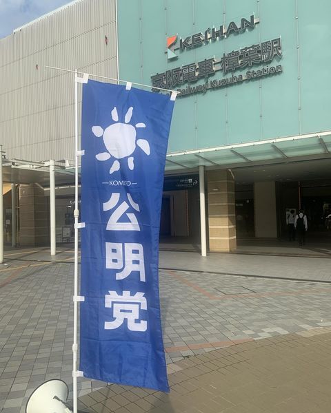 今朝は樟葉駅前で、公明ハンドブック街頭演説です!