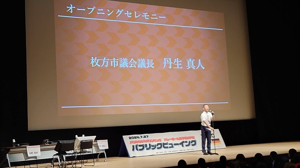 昨日は男子バレーボール🏐の日本対ドイツの試合のパブリックビューイングが、枚方市総合文化芸術センター大ホールで行われ、オープニングセレモニーでは、市議会を代表してご挨拶させていただきました!🇯🇵