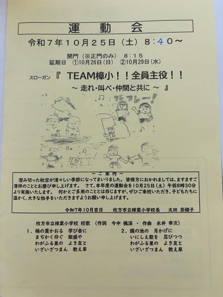 10/25(土)今日は、樟葉小学校と樟葉南小学校の運動会🏃♂️➡️工夫を凝らした演出、おそろいのTシャツや法被。グッズを使ったダンスなど、年々、エンタメ度が上がってきてますね👏楽しいひとときをありがとうございます♪☀️