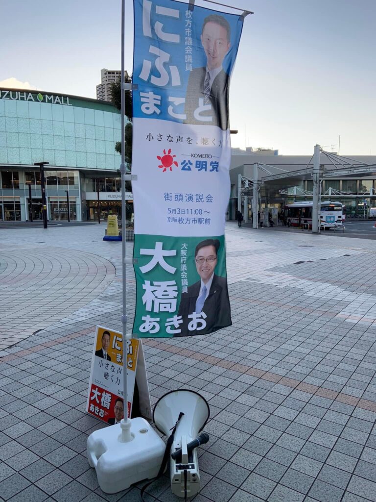 1月5日(木)樟葉駅前での街頭演説から活動開始です。寒い朝となりましたが、体調に気をつけて1日頑張りましょう!