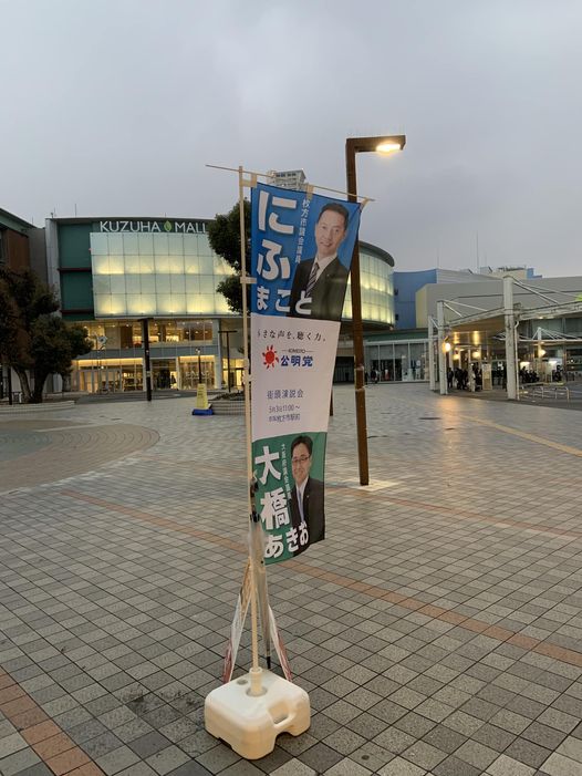 2月20日 小雨降る樟葉駅前から活動スタート!今日は、市民福祉常任委員会の委員協議会です。頑張ります♪