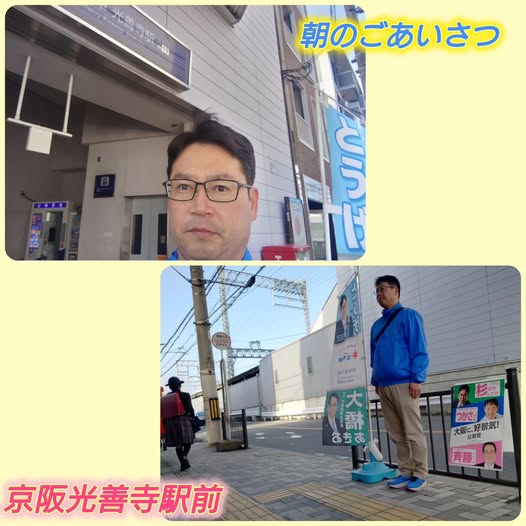 今朝は、京阪光善寺駅前よりスタートさせて頂きました!