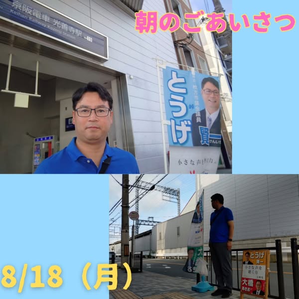 今朝は光善寺駅府道側でのごあいさつからスタートしております😊
